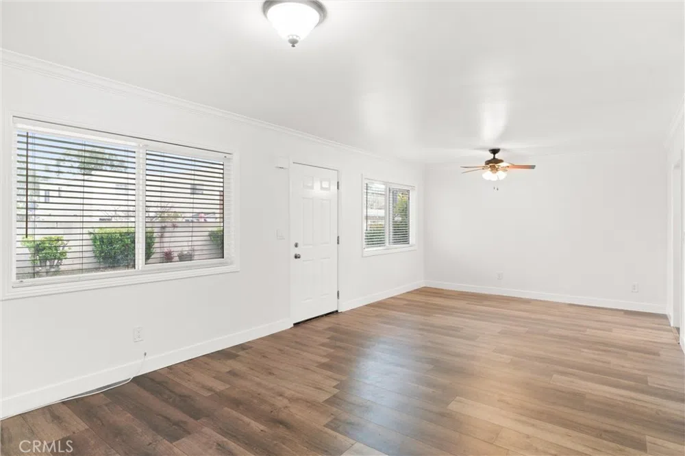 Welcome to your charming coastal retreat in Huntington Beach! Just blocks from the sandy shores and vibrant downtown area, this cozy 2-bedroom, 1-bathroom home offers an ideal blend of comfort and convenience. Upon entering, you're welcomed by an inviting open layout seamlessly connecting the living area, dining room, and kitchen. The kitchen boasts quartz countertops, a dishwasher, gas stove/oven, and ample storage space. Throughout the home, enjoy new vinyl flooring and the central heating. Each room features a ceiling fan, spacious closets, and blinds for every window. Onsite laundry facilities, along with one locked garage parking space and one uncovered space per tenant, add to the convenience. Rent includes water and trash, while tenants are responsible for electricity, gas, and internet. Welcome home to coastal living at its finest!