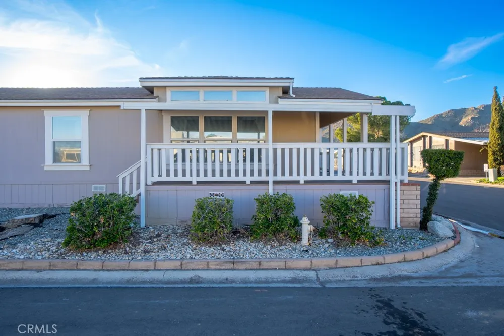 Beautiful manufactured home featuring 3 spacious bedrooms, 2 baths, good size family room, dining area, it's own laundry room, nice size kitchen, nice porch and a nice two car covered patio. This home is situated within the desirable Los Ranchos Mobile Home Park which features 2 nice pools to enjoy this hot summer days, a very nice lake to spend and have a good time fishing and the park also has movie nights on the lawn by the lake during the summer, it also has 2 club houses that you can use to have your nice gatherings and/or your birthday parties. MUST SEE TO APPRECIATE!!!