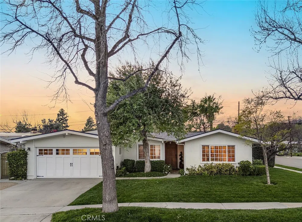 Stunning, single level home in North Duarte, set against the breathtaking San Gabriel mountain range, offering a blend of timeless elegance and modern comfort. Meticulously cared for, with attention to detail present in every room. Classic craftsmanship & modern upgrades are noted throughout this beautiful property. A separate and detached Casita is located in the quaint landscaped backyard w/heated pool & spa close by. Step inside to a welcoming foyer that sets the tone for the rest of the house. The living room w/vaulted ceiling and custom arched gas fireplace creates a cozy atmosphere, ideal for gatherings with family & friends. Sliding French doors separate an adjoining family room. The heart of this home is the updated kitchen, featuring custom cabinetry, recessed lighting, center island, newer appliances, and counter space for the avid chef. The dining room with views to the outside completes this serene setting. The large master ensuite offers a peaceful retreat with custom closets, and heated travertine floors for radiant underfloor heat and comfort. A door to the outside is convenient for a dip in the pool or spa. The attached bathroom has been tastefully remodeled to include a soaking tub & travertine enclosed shower. Two additional bedrooms share an updated hall bathroom. Exceptional living continues into the serene outdoor space. Enjoy the private walled backyard, mature landscape, built-in bar area, retractable awning, BBQ area, fruit trees & mountain views, creating a perfect ambiance for relaxation and entertaining. The detached Casita, remodeled in 2018 makes a perfect addition for guests or extended family members. It offers a bedroom with Saltillo tile floors. An extensive attic for storage with pull down stairs access. It also features a kitchenette w/farmhouse sink, built-in refrigerator, and soapstone countertops. A separate vintage inspired bathroom and custom cabinets complete this beautiful Casita. 2-car oversized attached garage, w/laundry area, Saltillo tile counter including built-in cabinetry. INVALUABLE FEATURES INCLUDE: Tesla solar owned panels with Powerwall back up creating energy savings every month, newer roof, electrical panel upgrade, main gas line upgrade to house, hardwood and tile floors throughout, custom solid wood interior doors, dimmable recessed lighting throughout, solar tube in hallway and so much more. Come and see this exceptional home in person to truly appreciate all it has to offer!
