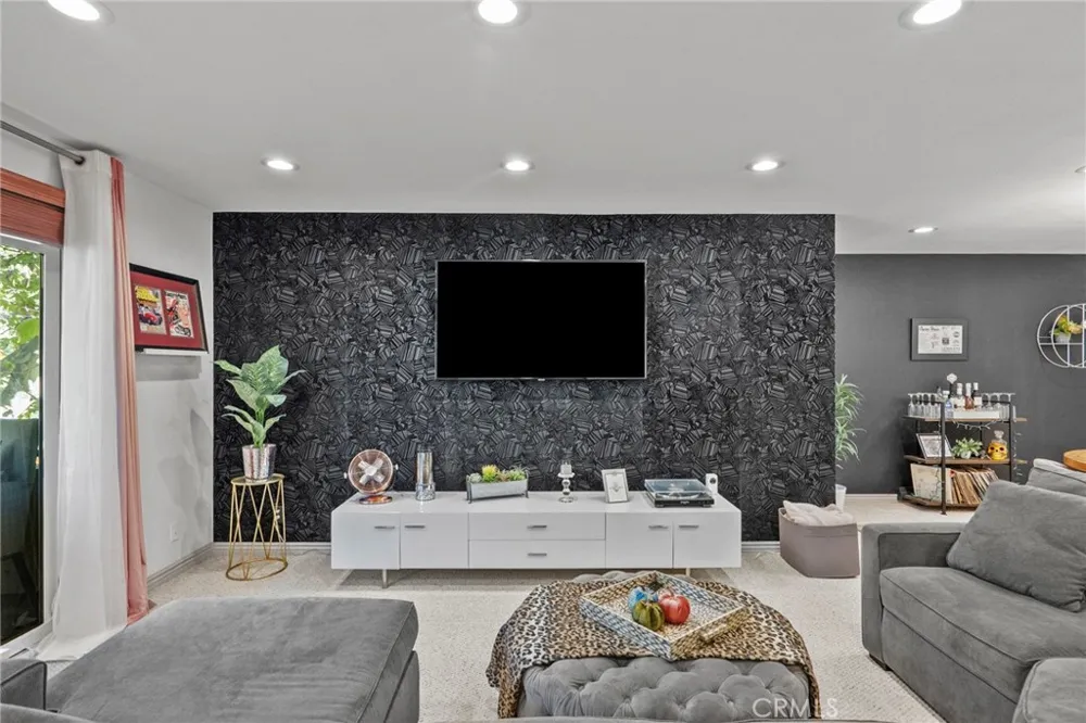 Right off the yellow brick road and discreetly tucked away from all that glitters is a serene Hollywood oasis you can call home. Sip your morning coffee on a balcony perched in the remaining wilderness of the swankiest city in the country. Come home and unwind with a glass of wine in that same space. Ready for a night on the town? It's literally right around the corner. The home itself is as glamorous as it's location. Custom black textured wallpaper in the living room brings a touch of sophistication to the earthy vibe. Quaint and cozy kitchen with stainless steel appliances. Luxurious slat wood paneled wall in the primary bedroom dramatically accents any bed frame you choose to put in front of it. Separate shower and tub in the primary bath. Modern updated powder room in the entry and a 2nd space that can be used as a bedroom or office. All brand new windows and sliding glass patio door. The community is immaculately maintained and equipped with a 2 gorgeous pools, gym, tennis court, clubhouse, sauna, and spa tub. High Speed Internet Included along with Earthquake insurance!
